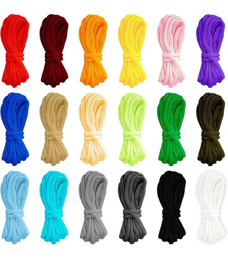 Multi-functional parachute cord: This parachute cord for bracelet has many uses and makes your life more convenient. When camping, it can be used as tent rope, luggage rope, hiking, camping, climbing, rescue, fishing, etc. In daily life, it can be used as a clothesline, dog rope, key chain, handmade, belt, etc.DURABLE MATERIAL: Our paracord cord is made of high quality nylon, which is resistant and not easy to break. It has the characteristics of safety, lightness, softness, comfortable hand feeling, quick drying, abrasion resistance and no ball after frequent rubbing. It is a good helper for outdoor sports.DIY paracord bracelet: The nylon paracord can be woven into a paracord bracelet. It is convenient for you to use in an emergency, and it will be your most convenient tool. You can also change its length freely according to your needs. It is very suitable for outdoor sports.PARENT-CHILD INTERACTION: Paracord ropes can be used to make crafts or outdoor tools with children. This can enrich your free time and increase your children's hands-on ability and survival ability outdoors.Rich colours: the multi-coloured paracord has 18 different colours: white, yellow, black, purple, dark blue, light blue, sky blue, dark grey, light grey, red, wine red, fluorescent green, dark green, army green, orange, coffee colour, pink, nude colour. You can choose the colors you like according to your needs, so you can easily distinguish their uses. ...