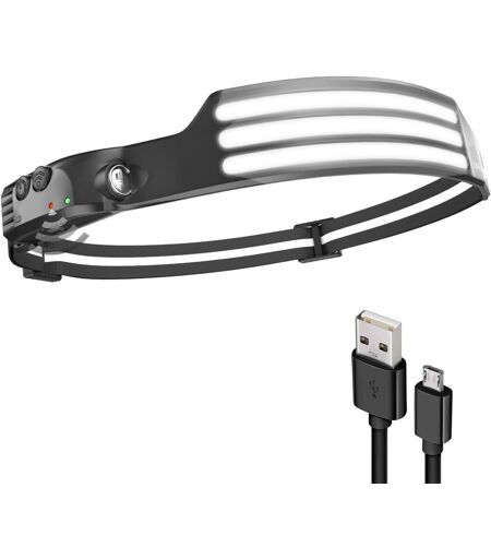 [Upgraded battery] The headlamp has a 2600mAh battery that allows you to fully enjoy your activities at least 4.5 hours at full power and up to 18 hours in minimum mode. Full charge only takes one to 2 hours.[5 Lighting Modes] The headlamp has 5 different modes: the LED lamp has high or low power, the XPE lamp high or low power and strobe (hold and press the ON/OFF button for 3 seconds to enter strobe mode). All modes are suitable for any activity.[REFLECTIVE STRIP] A double-sided reflective strip has been added on the rechargeable headlamp to allow better visibility according to your dark or night activities. Ideal for running, scooter or hiking and camping.[MOTION SENSOR FOR HANDS FREE USE] With its unique motion sensor, the head torch simply turns on and off with a wave of your hand without touching it. More convenient, it avoids getting dirty or busy hands. Ideal for auto repair work or DIY in dark areas, the rechargeable LED light leaves your hands free to focus on something else.[Comfortable Headband]The LED headlamp has a lining on the forehead to prevent heat during lighting modes, which allows for comfortable long-term use. ...