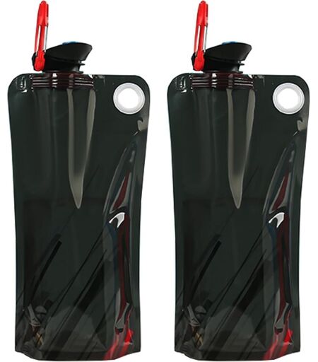 PACKAGE INCLUDES: 2 x Foldable water bottle bags, can hold about 1000ml of room temperature water or ice cold drinks, so you can enjoy a pleasant hiking time with your family and friends.Soft water bottle with carabiner: In order to facilitate your mountaineering trips and those of your friends, we have designed a mountaineering loop on the lid of the foldable water bottle. You can easily attach the water bottle on the shoulder strap of your mountaineering backpack for convenient storage and take it out to drink water at any time.Safe and reliable materials: the foldable water bag is made of practical quality PE composite material, does not contain BPA, is non-toxic and harmless and can be used with confidence.EASY TO STORE:Whether you go hiking or camping, the foldable water bag can save your storage space, allowing you to travel light and enjoy a happy time with your family and friends.Wide range of uses: the collapsible water bag can be washed and reused, which replaces bulky and fragile glass water cups. It is very suitable for hiking, hiking, festival trips, parties, performances, hiking and cycling camping ...