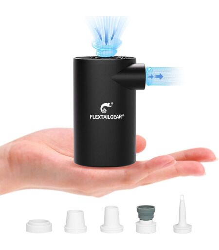 [Built-in 3800mAh Rechargeable Lithium-Ion Battery]Featuring a 3800mAh lithium-ion battery, the EVO air pump provides about 40 minutes of continuous use. Once fully charged, this portable electric pump can inflate up to 32 buoys, 12 inflatable mattresses or 8 inflatable boats. Rechargeable design makes it the ideal companion for outdoor activities.[Powerful Air Pressure] FLEXTAILGEAR EVO air pump, an efficient cordless electric pump, offers a high air pressure of 4.5 kPa and a flow rate of 250 l/min. With its high pressure capacity, it inflates quickly and deflates to ensure optimal inflation results with saturation of 80% to 90%, thus meeting different inflation requirements.[Lightweight & Easy to Use]Weighing only 167g/5.8oz and measuring 2.4"" x 2"" x 3.6"", the EVO air pump is compact and easy to carry, both indoors and outdoors. Its wireless design eliminates the hassle of cables and provides comfort and flexibility.[Versatile and efficient] The FLEXTAILGEAR mini pump is a multifunctional device for inflation and deflation. It effectively inflates large objects such as swimming pools, sofas, air mattresses, and more. Its powerful performance meets different inflation needs when traveling or outdoor activities. (Note: Not suitable for balls or tires.).[Five Sizes Selectable Inflation Tips] The EVO air pump is equipped with five different inflation tips sizes, suitable for most inflatable products. Whether you need to inflate or deflate, you can choose the appropriate tip size for different occasions, thus providing enhanced convenience and versatility. ...