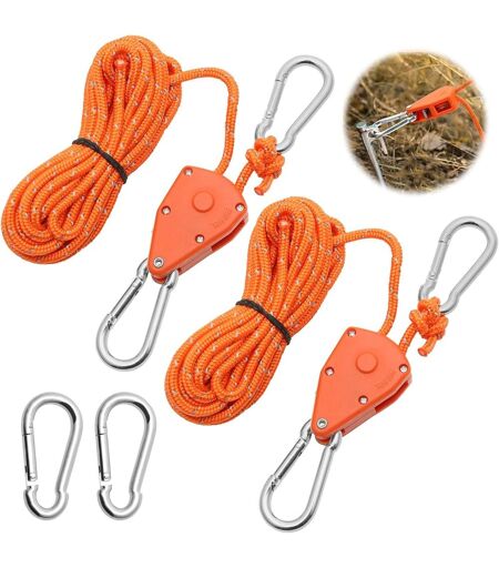Colors and Sizes: Our ratchet rope with hook are available in black, white, khaki and orange for your choice. Pulley ratchet lifting rope 1/8, camping cord length 4M, rope diameter 4mm, carabiner 5x50mm. ...