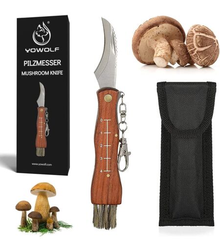 [ERGONOMIC DESIGN]The stainless steel blade is slightly curved, so it fits perfectly to the natural round shape of the mushroom stem, cutting cleanly without disturbing the soil and mycelium underneath. Handle design for easy grip and quick opening. The grip is comfortable, firm and not easy to fatigue. Compact structure and beautiful appearance.[PREMIUM MATERIAL] The mushroom knife is made of high quality steel, it is lightweight, strong and durable, with a sharp blade, excellent hardness and corrosion resistance, and easy to grip handle. High-quality mushroom knives increase your enjoyment and productivity when harvesting mushrooms.[MULTIFUNCTIONAL] The end of the mushroom knife is built into a small brush, which can simply remove the soil and leaves from the mushrooms without damaging the fungi. The mushroom knife also has a built-in scale that allows you to know the height of the mushrooms. We will also give you a bag that can hold mushroom knives, which can be hung on your belt for complete hands-free use.Perfect gift: The folding knife is very exquisite, beautiful and has a unique charm. In addition to using it outdoors, it is also a perfect gift.[100% QUALITY ASSURANCE]We promise that we only use the highest quality materials. Unlike other brands, YOWOLF always insists on quality products. Your purchase is risk-free and we offer you a 30-day money back guarantee! If you are not satisfied, please feel free to contact us! ...