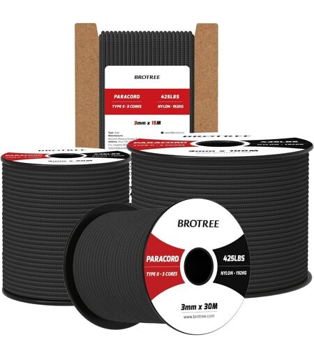 Paracord 3 Mm 50 M 100% Nylon Paracord Rope 425 3 Strands Type Ii Parachute Cord For Outdoors,Crafts-193 Kg Break Load (Black)