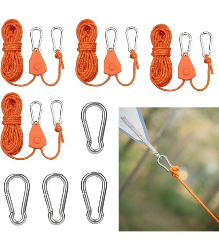 4 X Tent Ropes With Pulley Diameter 4 Mm Ratchet Ropes With Hooks Camping Rope Light Nylon Rope For Camping,Awnings (Comes With 4 Replacement Carabiners)