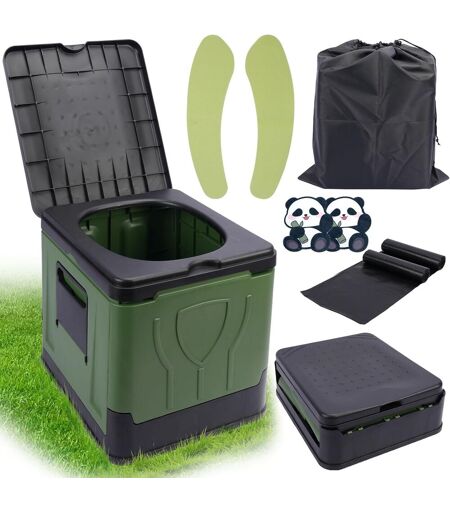 ¿FOLDABLE PORTABLE TOILETS: The product includes 1 portable toilet with lid, 1 toilet mat, 1 storage bag, 2 rolls of thick trash bags, 2 panda deodorant stickers and other accessories. Concealed handles on each side make it easy to carry, and the top lid makes use cleaner and more hygienic.High quality material and high load capacity: This folding toilet is made of high quality polypropylene, waterproof and odour-resistant, sturdy and durable. Widened groove and bottom reinforcement reinforce the strength and stability of this collapsible toilet, without deformation, for you and your family's comfort.Quick folding and easy installation: This folding camping toilet is easy to set up and fold. Remove the lid first, open the four panels and fasten the buckle. Finally, place the toilet seat on top to complete the installation. Even for the first time, installation is fast.Easy to transport and space-saving - this folding toilet can be quickly stored and folded up after use. The space occupied after storage is significantly reduced. Easy to place under the car seat or in the trunk, the toilet is very compact. Even when folded, they can store some accessories and small items.Multifunctional: This camping toilet is ideal for hiking, driving, family gatherings, camping, fishing, mountaineering, etc. They can serve as trash can, fishing stool, camping chair, object storage and emergency portable toilet, making them very practical and practical.Warning:Not suitable for children under 3 years. For use under adult supervision.Warning:To be used under the direct supervision of an adult ...