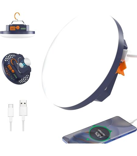 [24H Lighting Time & 3 Adjustable Modes + SOS Mode] The camping lantern can last about 300 hours in soft light mode, 48 hours in medium brightness and 24 hours in high brightness after fully charged. 6800-7000K color temperature, can illuminate 50m2, suitable for night outdoor activities. There is a light indicator indicating the battery level so that you can charge the lantern in a timely manner.[USB Rechargeable & 9900mAh Power Bank]USB port for fast and convenient charging. The rechargeable lantern can also be used as a power bank when you need to charge your phone or tablet. It is energy efficient and suitable for outdoor camping, BBQ, power outages, emergencies, hurricanes and earthquakes, etc.[Magnet, Hanging Hook & Lightweight]The camping lantern with magnetic base and hook, weight 9.8 oz, diameter 120 mm, portable and perfect for tent camping and fishing, easy to carry in your handbag or backpack.[Waterproof & Fast Cooling] USB camping lantern is made of high-quality A-class LED chips and lamp shade material, protected against water splashes. As an excellent camping gear, it has the heat resistance of a honeycomb cooling design, providing you with a durable companion for any adventure.[Suitable for Outdoor or Indoor Lighting]Portable work lights are suitable for camping, fishing, BBQ, vehicle repair, workshop, garages, various work environments such as warehouses, garden, hiking, shop and yard lighting and more indoor or outdoor activities. ...