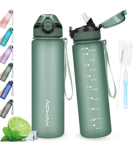 HEALTHY WATER BOTTLE - AOHAN motivational water bottles are made of eco-friendly food grade plastic, 100% BPA free, so there is no need to worry about harmful chemicals. It is a healthy and sustainable choice for you and your family.DISHWASHER SAFE WATER BOTTLE - Our bottle is dishwasher safe, reducing your workload. You can also quickly clean your water bottle with the cleaning brush and straw brush. (Note: the material of the bottle is high temperature resistant, but too high temperature will cause the paint surface to fall, please use the low temperature mode of the dishwasher to wash it).Leak-proof Lid The water jug lid comes with a safety cap and internal silicone seal for double protection against leakage and dust. The flip lid is equipped with a safety lock so that water will not leak even if the bottle is spilled, perfect for outdoor hiking, cycling, camping, running, yoga or any other sports.ONE HAND OPENING - AOHAN water bottles are sturdy, durable and impact resistant. It can be opened with one click of one hand. Food grade silicone straw allows you to sip directly to help you hydrate faster. The mouth of the cup is wide enough to hold ice cubes and is also easy to clean.LIGHTWEIGHT & PORTABLE The wear-resistant wrist strap makes the bottle easy to carry. You can take it anywhere. Perfect for gym, workout, office and all outdoor activities. It is a perfect health gift for friends and family, to help them stay hydrated and healthy. If there is any problem, just contact us, we will deal with it immediately. ...