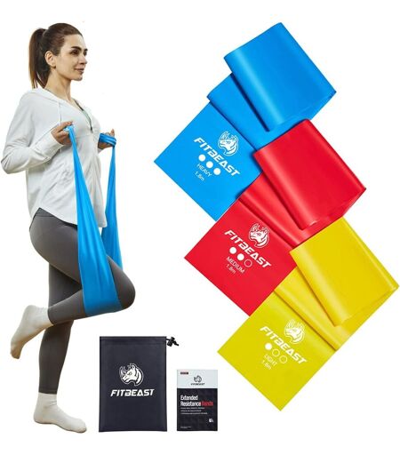 [NOT EASY TO BREAK, MORE ELASTIC AND NO HURT YOUR HANDS]: The FitBeast resistance band is made of high-quality TPE material, which can withstand 3-4 times stretching, and this resistance of Pilates bands is durable, not easy to break, more elastic, odorless, soft to the touch and does not strangle your hands when you use it.[1.8M LONG BAND WITH THREE DIFFERENT LEVELS]: FitBeast Pilates band set will lengthen the band to 6 feet, which can be a good exercise for your legs, hips, waist, arms and back. At the same time, the 1.8 m long resistance bands represent different levels of resistance: yellow-15lbs (light), red-20lbs (middle), blue-25lbs (heavy). Each exercise band is marked with a weight level.[WORKOUT ANYWHERE AND ANYTIME]: FitBeast Yoga stretch band comes with a portable bag and a door anchor. With the bag, you can exercise anywhere, anytime, even at home, office, gym and on the go. In addition, the door anchor can help you do more effective arm exercises.[Exercise Recovery Trainer]: FitBeast Pilates resistance bands can effectively achieve full body stretching, improve core flexibility and strength, and increase flexibility of hips, legs, chest, back and arms, perfect for yoga, pilates, stretching.[PROFESSIONAL TRAINING VIDEOS & EXCELLENT AFTER SALE SERVICE]: FitBeast is committed to creating a professional home fitness brand. Therefore, we will provide professional training videos for our products, so that you can get professional training advice and get better exercise results. ...