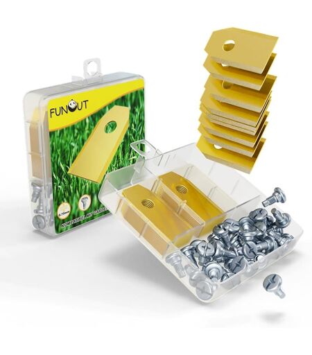 High Quality Robot Lawn Mower Replacement Blades - Our 36x Titanium Replacement Blades are made from high quality materials, providing exceptional durability and long life to give your robot lawn mower reliable cutting performance.[Extensive Compatibility]These replacement blades have been specially designed for Gardena and Husqvarna Automower Premium robotic lawnmowers and ensure perfect compatibility. No matter what your robot lawn mower model, we can provide you with the right replacement blades for your needs.Upgraded Design Concept Our robot lawn mower replacement blades feature an upgraded design concept with 0.75mm blade thickness and 3g weight, resulting in impressive cutting performance and longer service life.EASY REPLACEMENT These replacement blades are easy to replace, allowing you to replace them quickly and easily without the need for additional skills or tools.Sufficient Replacement - With the purchase, you will receive 36 replacement lawn mower blades to make sure you have enough replacement blades for long term use. So you can ensure that your lawn mower robot blades are always ready to use, even with prolonged use. ...