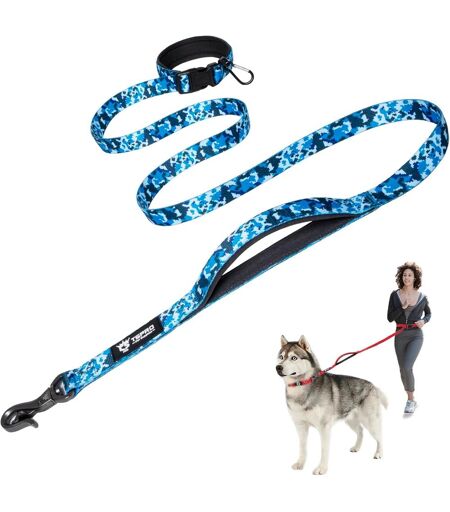 Hands Free Adjustable Dog Leash With Padded Safety Handle And Durable Metal Clasp For Walking And Running For Medium And Large Dogs (Camo Blue)