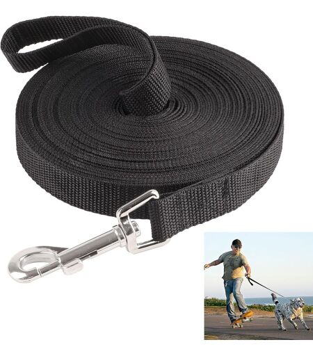 Dog leash size: length: 10 m; width: 2 cm; dog leash can hold up to 550 lbs of tension.Get Extra Freedom This dog training leash is extra long, the 10m leash gives your dog extra freedom, your dog can run, train or walk freely in the forest or garden. Unleash the nature of the dog, which is perfect for daily walking, running, training and other outdoor sports.Durable Material The dog training leash is made of strong nylon material, double-layer tight woven nylon makes the dog leash with better stretch resistance and will not break. The D shape buckle is made of premium zinc alloy, corrosion resistant, has high hardness and not easily deformed.360° Rotatable D Carabiner Design The D-ring carabiner is 360° rotatable, which prevents the dog leash from twisting and tangling the dog, and reduces the load on your hand or arm. Enjoy relaxed walks with your dog.Ideal Training Rope The dog leash is very well suited for small, medium or large dogs. Suitable for professional dog training or dogs' daily activities. The perfect dog accessory ...