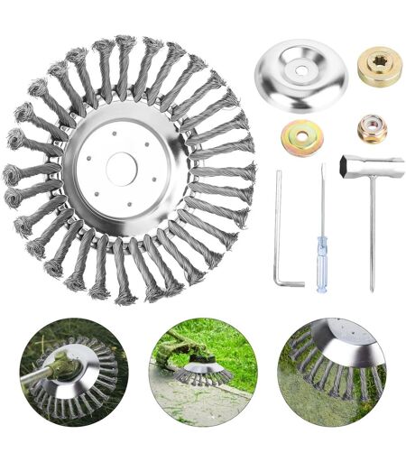 ¿¿[Dimension]¿¿The steel wire brush has a large cutting diameter of 150mm, the diameter of the receiving hole is about 25.4mm (1 inch). Any shaft diameter less than 25mm can be used. Before using a brush cutter, you must wear protective equipment (face protection, hearing protection, solid clothing, high boots and gloves)..¿¿[High Quality Steel Wire]¿¿ Made of high quality steel wire, sharp and efficient, strong and durable. The steel wire is not easy to fall off and can be used for a long time. The weed brush is made of knotted wire, which ensures abrasion resistance and high flexibility. And it can work normally if rocks and stones are encountered during use..¿¿[Easy to Install]¿¿3 installation tools and 4 accessories are included. Installation is simple: simply place our brush cutter head on the top screw of the straight shaft mower and secure it with a washer and nut. Wear protective equipment before using the brush cutter..¿¿[Effectively Eliminate Weeds]¿¿High quality and sturdy wire for our weed cutters, with double sealing stainless steel, weeds, moss and weeds can be removed quickly and easily from surfaces or sidewalk joints..¿¿[Wide Application]¿¿Ideal for removing foam from paving joints or cleaning dirt from surfaces and gutters, etc. Weed brushes are very suitable for use in gardens, lawns, parks, plant walls, grass for stone paths, grass for agricultural areas, orchards. ...