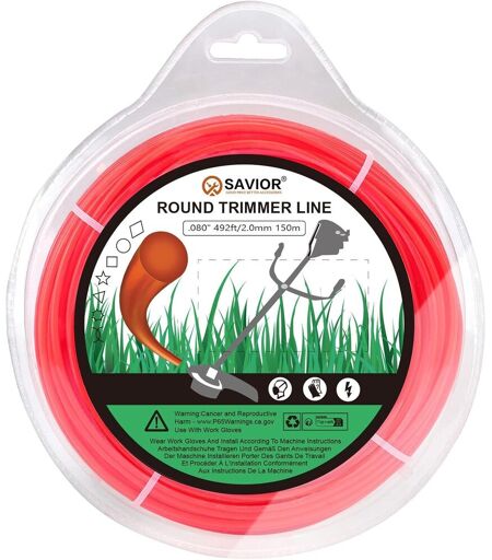 Savior Strimmer Wire 2 mm x 150 m Spool Strimmer Strimmer Cord for Gardening Lawn Weeds (2 mm x 150 m,Rund,Orange)