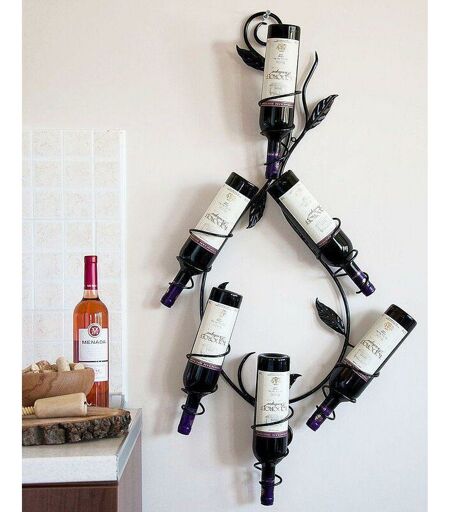 Etagère à vin "Natura" - magnifique décoration de chambre. Forgée en métal et richement décorée. Entièrement apprêtée avec une peinture antirouille et laquée avec des peintures de haute qualité. Couleur - noir. Dimensions: hauteur environ 100 cm, largeur environ 45 cm, profondeur environ 10 cm. ...