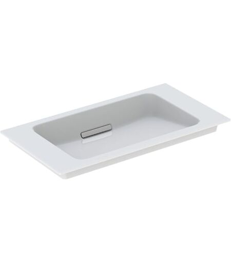 Geberit One lavabo pour meuble 500391011 75x13x40cm, sans trou pour robinetterie, recouvert de trop-plein, blanc Keratect/couvercle chromé brillant