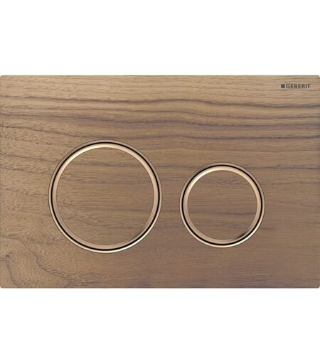 Plaque de déclenchement ronde Geberit Sigma 50 115650JX1, plaque/bouton chromé, noyer, anneau or rose, pour chasse d'eau à 2 niveaux