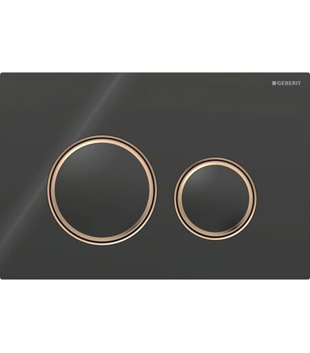 Plaque de déclenchement ronde Geberit Sigma 50 115650SJ1, plaque/bouton noir, anneau or rose, pour chasse d'eau à 2 niveaux