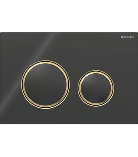 Plaque de déclenchement ronde Geberit Sigma 50 115652SJ1, plaque/bouton noir, anneau en laiton, pour chasse d'eau à 2 niveaux