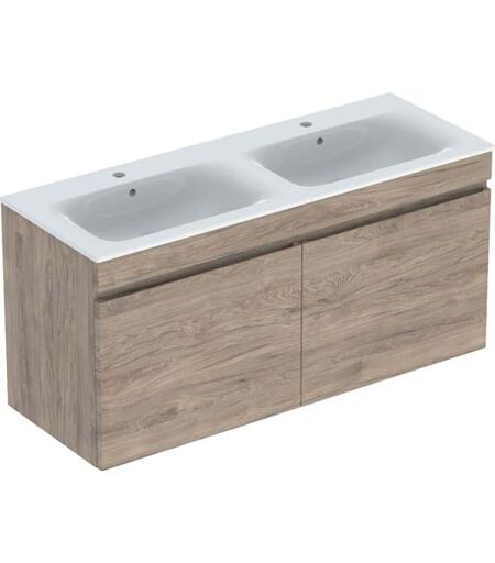 Geberit Renova Plan set de lavabo double 501918JR8 130x62,2x48cm, corps noyer revêtu, lavabo blanc / KeraTect