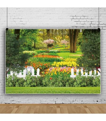 220x150cm Printemps Paysage Fond Paysage Naturel Photographie Fond Parc Fleur Route Jardin Toile De Fond Anniversaire FêTe De Mariage DéCoration BannièRe pour Boudoir DéCor