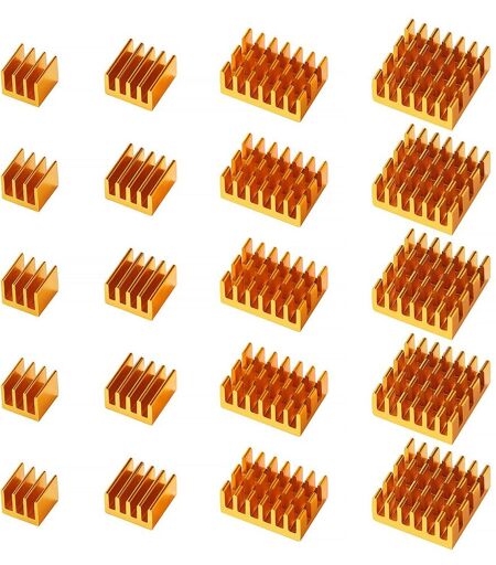 20 Pièces Ailettes Refroidissement Aluminium Trousse,Refroidisseurs Transistor,Module Radiateur Ailettes,avec Ruban Thermique,pour Refroidissement des Composant Électronique,Doré