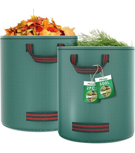 2X 500L Sac Dechets Verts de Jardin,Sac Jardinage Dechets avec 4 Poignées,Autonome,Imperméable,Sac Jardin durable Résistant à la Corrosion