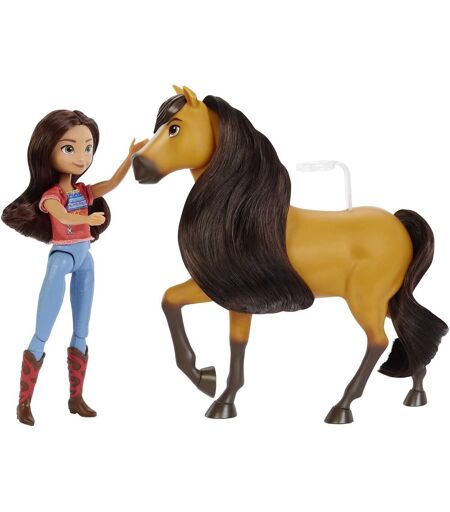 Prenez part aux histoires d¿amitié, de courage et d¿aventure de la franchise Spirit des studios DreamWorks !.Idéal pour revivre les aventures de la saga Spirit, ce coffret inclut une poupée Lucky d¿environ 18 cm et son cheval adoré Spirit d¿environ 20 cm.Lucky porte un jean en plastique moulé, les bottes de sa mère, un joli haut en tissu et un sac à main. Dotée de 7 points d¿articulation pour une multitude de poses, elle est prête pour l¿action !.Spirit peut bouger la tête pour reproduire son air espiègle et d¿autres attitudes, et possède une crinière toute douce que les enfants prendront plaisir à brosser.Coiffez les cheveux de Lucky et la crinière et la queue de Spirit à l¿aide de la brosse fournie, et donnez des pommes au cheval pour le récompenser.Attention:Ne convient pas aux enfants de moins de 36 mois ...
