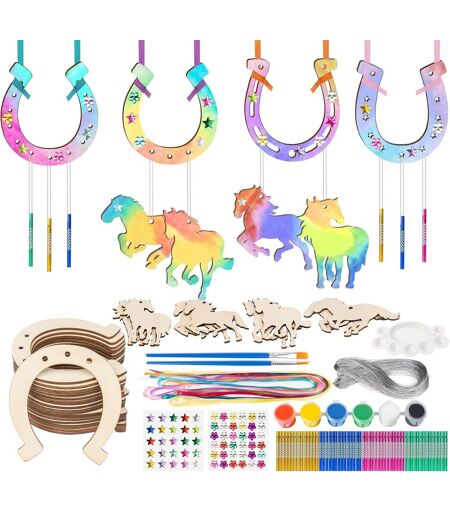 106 Bricolage Fer à Cheval en Bois Carillon à Vent,20 Pcs Fer à Cheval en Bois à Peindre,Kits Bricolage Carillons Vent,Cadeau Anniversaire pour Activité Manuelle Enfant,Décoration pour Jardin