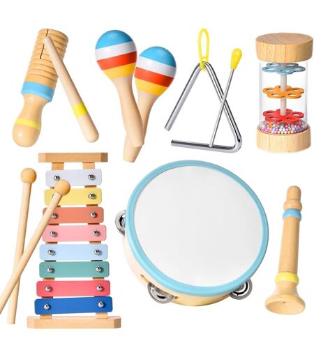 [Ensemble d'instruments de musique polyvalent pour stimuler la créativité] Ce jouet musical comprend un xylophone, un tambour, des maracas et plus encore, permettant aux enfants d'explorer différents sons et rythmes tout en développant leur amour pour la musique et leur créativité.[Matériaux sûrs et écologiques pour une tranquillité d'esprit] Fabriqué en bois de haute qualité et peinture non toxique, ce set répond aux normes internationales de sécurité. Les bords lisses assurent un jeu en toute sécurité pour les petites mains, idéal pour les enfants de 3 ans et plus.[Développe la coordination main-?il et le sens musical] En tapant, secouant et jouant, les enfants améliorent leur coordination main-?il tout en développant leur sens du rythme et de la musique, posant les bases de l'apprentissage musical futur.[Design neutre pour tous les enfants] Avec un coloris simple et élégant, ce set convient parfaitement aux garçons et aux filles, en faisant un cadeau idéal pour les anniversaires, les fêtes ou le jeu quotidien.[Sac de rangement pratique pour une organisation facile] Le set est livré avec un sac de rangement portable, permettant aux enfants d'organiser et de transporter facilement leurs instruments tout en encourageant la propreté.Attention:À utiliser sous la surveillance d¿un adulte ...