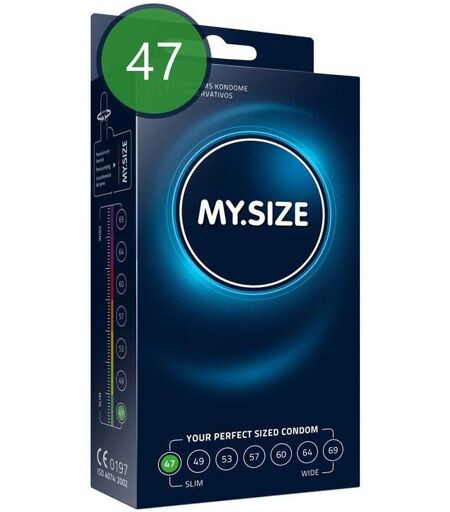 My.Size c'est la marque de préservatifs allemande parfaitement adaptés à votre taille de pénis ! Elle est la seule marque en Europe à proposer une gamme de préservatifs de 7 tailles différentes pour convenir à toutes les mensurations. La taille parfaite est la taille qui vous fait sentir le plus à l'aise. Plusieurs études ont montré que les préservatifs standards, pour beaucoup d'hommes, sont trop serrés ou trop larges. En plus d'augmenter le plaisir lors des rapports sexuels, avoir un préservatif parfaitement ajusté à sa taille vous assure le confort et la sécurité maximum. Il existe un My.Size pour chaque taille de pénis ! À l’aide d'un ruban mesurable déterminez la circonférence de votre pénis pour trouver LE préservatif qu'il vous faut. Ce ruban est disponible dans vos boîtes My.Sise ou téléchargez le gabarit (https://drive.google.com/file/d/1N2dKoPOYWIMGBtVppaNUKlUWYze_N497) puis imprimez-le à l'échelle afin de déterminer votre taille. La boîte de préservatifs My.Size 47 est idéal pour les pénis d'une circonférence entre 9.5 et 10 cm, soit un diamètre de 47 mm. Les préservatifs ont une épaisseur de 70 microns. Conçus en latex de caoutchouc naturel, ils vous promettent un confort maximum, pour un plaisir intense. Testés électroniquement ces préservatifs sont munis d'un réservoir. Norme CE. Retrouvez aussi les Préservatifs MY.SIZE 47 en Boite de 3 (https://www.espaceplaisir.fr/mysize-47-boite-3.html) et Boite de 36 (https://www.espaceplaisir.fr/mysize-47-boite-36.html). Pour une utilisation optimale et en toute sécurité de vos préservatifs, espaceplaisir vous recommande d'utiliser un lubrifiant à base d'eau. De plus, les sensations n'en seront que meilleures ! ...