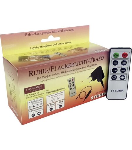 enquête Avec télécommande 4 types d'éclairage et niveaux de variation Fonction minuteur 5 sorties description Transformateur de lumière de repos/scintillement avec télécommande 3,5 V pour les essais de poupées et les crèches de Noël ou la construction d'un modèle, sortie 5x 0-3,5 VDC / 0,2 A, courant continu. Ce texte a été traduit par une machine. livraison Transformateur · Télécommande · Pile bouton · Mode d'emploi fabricant et numéro du fabricant Kahlert LichtC 60977 données techniques Tension de sortie: 3.5 V informations supplémentaires Kahlert Licht C 60977 Transformateur pour éclairage 230 V Transformateur avec télécommande Avec télécommande 4 types d'éclairage et niveaux de variation Fonction minuteur 5 sorties Transformateur de lumière de repos/scintillement avec télécommande 3,5 V pour les essais de poupées et les crèches de Noël ou la construction d'un modèle, sortie 5x 0-3,5 VDC / 0,2 A, courant continu. Ce texte a été traduit par une machine. Technical specifications: ...