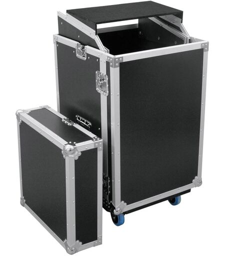 Boîtier rack avec roulettes Rails profilés inclinés vers le haut pour unités à commande par le haut, Avec bureau pour ordinateur portable, Fabrication de haute qualité avec contreplaqué multicouche collé de 9 mm, noir, laminé, 2 housses amovibles, Cadres en profilé d'aluminium 30 mm avec bords arrondis, 2 poignées articulées chromées, 6 serrures papillon de haute qualité, 4 roulettes avec 2 freins de blocage, Avec rails profilés adaptés aux unités 19 pouces, 17 U, Avec porte de service, Pour plus d'informations sur ce produit, veuillez consulter la fiche technique dans la rubrique « Téléchargements »., Charge maximale: 100 kg, Couvercles amovibles: 2 pièces/pièces, Cadres en profilés d'aluminium: 30 mm, Poignée de valise: 2 pièces/pièces, Verrou: Verrou papillon: 6 pièces/pièces, Aide au transport: 4 roulettes avec 2 freins de blocage, Matériau: Contreplaqué multicouche collé, 9 mm, Couleur: Noir, laminé, Zone de stockage: 51 cm x 28 cm, Largeur du panneau avant: 19 pouces, Hauteur de montage: Avant env. 75,5 cm (17 U)Hauteur env. 44,5 cm (10 U), Profondeur de montage: 450 mm, Conception du logement: 17 U, Dimensions: Largeur: 56 cmProfondeur: 59 cmHauteur: 112 cm, Poids: 35,40 kg ...