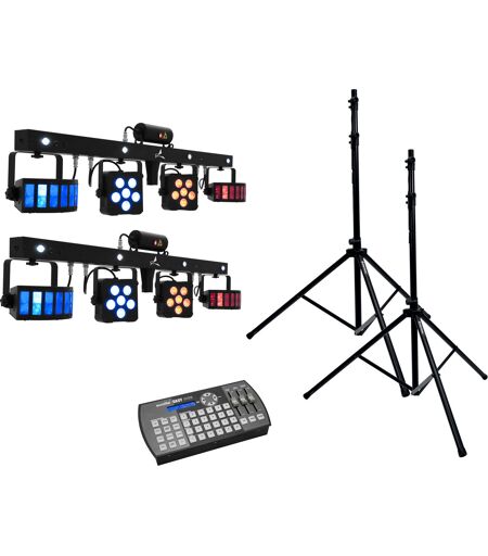 EUROLITE Set 2x LED KLS Laser Bar PRO + Easy Show + 2x M-4 Speaker-System Stand - Kits
