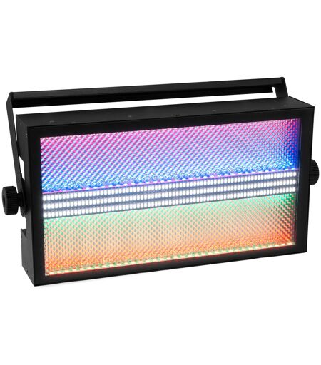 Le Super Strobe ABL combine trois fonctions en un seul appareil: il est équipé de 216 LED SMD blanc froid pour des effets stroboscopiques dynamiques et des effets blinder plus lents. De plus, la surface réfléchissante du stroboscope est éclairée par 144 LED RGB supplémentaires, créant des effets lumineux colorés et atmosphériques. Selon le mode DMX sélectionné, les LED couleur peuvent être divisées en 48 segments contrôlables individuellement, qui peuvent être utilisés pour créer des effets de couleur étonnants à l'intérieur de l'appareil.Le Super Strobe ABL dispose d'un angle de faisceau très large qui rend les effets lumineux dynamiques et calmes très impressionnants, même lorsqu'on les regarde de côté. L'appareil est équipé de connecteurs DMX à 3 broches ainsi que d'une entrée et d'une sortie P-Con pour le raccordement au secteur. Pour une utilisation structurée et polyvalente, vous pouvez choisir parmi 4 modes DMX différents avec respectivement 7, 13, 22 et 148 canaux DMX.Effet d'éclairage LED avec trois effets Boîtier métallique plat avec supports muraux intégrés, 216 LED puissantes 0,5 W SMD 5730 blanc froid (CW), 144 LED puissantes SMD 5050 3 en 1 TCL RGB (mélange homogène des couleurs)LED contrôlées séparément, Effet stroboscopique, effet wash, effet blinder, 17 programmes de spectacles intégrés, Contrôle via fonction maître/esclave, DMX, autonome, son et lumière, Sans scintillement, Avec support de fixation, Affichage LED à 4 chiffres et 7 segments, Variateur électronique, mélange des couleurs en continu, Entrée et sortie secteur pour le raccordement électrique de 8 unités maximum, Préprogrammé dans LED PC-Control 512, EASY SHOW 1, Light Captain, Pour des domaines d'application tels que: clubs/écoles de danse, scène, restaurants, bars et hôtels, DJ mobiles / animateurs, Très silencieux pendant le fonctionnement, Possibilité d'application: Suspendu, sur pied, Contenu de l'emballage 1 x effet lumineux, 1 x support de fixation, 1 x cordon d'alimentation, 2 x vis moletées, 2 x rondelles, 1 x manuel d'utilisation, Alimentation électrique: 100-240 V CA, 50/60 Hz, Consommation électrique: 95 W, Classification IP: IP20, Classe de protection: Classe de protection I, Connexion électrique: Alimentation secteur via P-Con (bleu), cordon d'alimentation pour version encastrable avec fiche de sécurité (fourni), Puissance de sortie: P-Con (gris), version à montage, Fusible: 5 x 20 mm, fusible F 2 A remplaçable, Type de LED: 216 x 0,5 W SMD 5730 blanc froid (CW)144 x SMD 5050 3 en 1 TCL RGB (mélange homogène des couleurs), Canaux DMX: 7, 13, 22, 148, Entrée DMX: 1 x XLR 3 broches (M) version à montage, Sortie DMX: 1 x XLR 3 broches (F) version à montage, Contrôle: Fonction maître/esclave, DMX, autonome, son et lumière, Préprogrammé dans: LED PC-Control 512, EASY SHOW 1, Light Captain, Projection: Sans scintillement, Angle du faisceau (1/2 crête): 120°, Système de fixation: Support de montage, Type d'affichage: Affichage LED à 4 chiffres et 7 segments,... ...