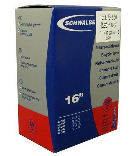 Schwalbe Sv3 Chambre À Air 16x1.75-2.50 Valve Presta Noir