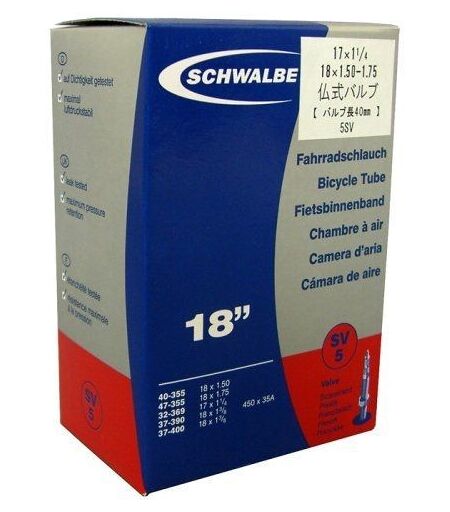 Schwalbe Sv5 Chambre À Air 18x1.75-18x1 3/8 17x1.1/4 20x1.25 Sv Valve Schrader Noir
