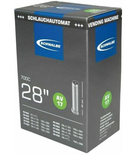 Chambre à air Schwalbe 28x1,75/700x45c (En Plastique) valve standard Roues et pneus Chambres à air Schwalbe Sv17 In Foil. Tube Schwalbe SV 17 en feuille 28x1 1/8 1.75'' 28/47 622/635 AGV 40mm. ...