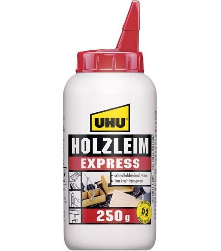 Informations techniques Convient pour : Types de bois courants, matériaux à base de bois et panneaux stratifiés Indications de sécurité / EUH : EUH 208 – Contient (nom de la substance allergisante). Peut produire une réaction allergique., EUH 210 – Fiche de données de sécurité disponible sur demande. compatibilité du matériau : bois Colle à bois Express Colle blanche universelle à prise particulièrement rapide avec une force de liaison maximale pour tous les types de bois et matériaux à base de bois Devient transparente en séchant. Temps ouvert : environ 10 minutes, temps de pressage entre 4 et 15 minutes La colle fraîche peut être enlevée à l'eau. Sans solvant. Fonctionnalités Colle à bois à prise particulièrement rapide Universelle - pour tous les types de bois, matériaux à base de bois et panneaux stratifiés Devient transparente en séchant - sans solvant. Configuration requise null ...