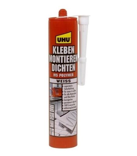 UHU - 47820 UHU Colle d'étancheité COLLER, MONTER, ETANCHER, blanc, 425g en cartouche, sans solvants, pour l'intérieur et extérieur, forte adhésion, imperméable, résistant au temps et aux UV, imperméable, résistant aux température de -40 à +100 degré, peut-être peint après le durcissement, colle et monte des éléments en métal, bois, pierre, etc... (47820) ...
