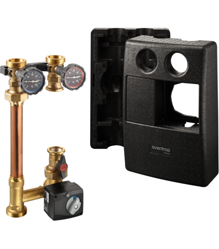 Système de raccordement de chaudière Oventrop Regumat 1355279 avec universel isolation thermique modulaire composé d'un dispositif d'arrêt avec 2 robinets à tournant sphérique et 2 thermomètres (sans dispositif de trop-plein) Tuyau à bride avec clapet anti-retour Vanne à boisseau sphérique devant la pompe Mélangeur à trois voies avec servomoteur et isolation thermique ...
