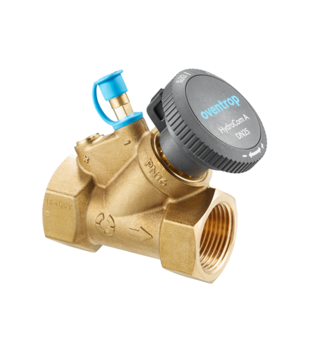 Oventrop Vanne d'arrêt de ligne HydroCom 1062726 pour couper les conduites de distribution dans les systèmes de chauffage et de refroidissement centraux à circuits fermés Installation dans la conduite de départ ou de retour en version à siège incliné sans préréglage Vanne de mesure, de vidange et de remplissage HydroPort en aval comme raccordement pour la conduite d'impulsion d'un régulateur de pression différentielle Corps de vanne et tête en laiton résistant à la dézincification Cône avec joint souple Etanchéité de la broche sans entretien grâce au double joint torique ...