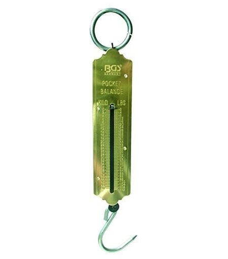 Sacs - balance à ressort à 50 kg de BGS Technic pour le contrôle de poids rapide, très robuste avec des crochets, laiton, avec échelle en kg et lb jusqu'à 50 kg Livraison: 1 pièce peson jusqu'à 50 kg ...