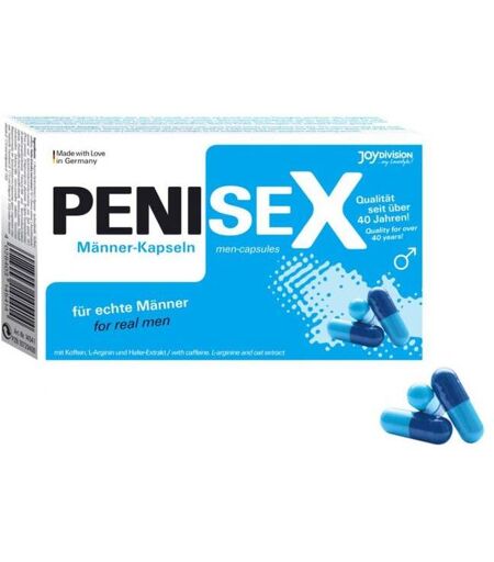 Les gélules Penisex permettraient de stimuler naturellement votre excitation, de booster votre virilité pour donner encore plus de satisfaction à votre partenaire. Il favoriserait l'irrigation sanguine et intensifierait l'orgasme masculin. Depuis plus de 40 ans, Penisex est synonyme de plus haute qualité et de performances convaincantes continuellement adaptées aux dernières découvertes. Ce qui rend ce produit si précieux, ce sont ses composants. Sa composition contenant de la L-Arginine, un acide aminé naturel confère un nouveau pouvoir mais également doté d'acides aminés naturels, d'extrait d'avoine, d'acide folique, oligo-éléments et des vitamines. Votre énergie sexuelle pourrait être décuplée. Posologie : Prendre 3 gélules par jour à jeun. Information complémentaire : A base de L-Arginine. Fabrication Allemande. Ingrédients : L-arginine-chlorhydrate, caféine / caféine, Hafer-Extrakt / extrait d’avoine 10: 1 (Extraktionsmittel H2O), L-Ascorbinsäure / acide ascorbique, Seekieferrinden-Extrakt / extrait d’écorce de pin maritime 10: 1 (Pinus pinaster), Zinkgluconat, DL -alpha-Tocopherylacetat, acide folique, Natriumselenit / sélénite de sodium, Chrom (III) -chlorid, Gelatine, Füllstoff mikrokristalline Cellulose / Remplisseur microcristallin-cellulose, Trennmittel Magnesiumsal de Spreisantfiche und Indigotine (E 132) / dioxyde de titane de couleur (E 171) et indigotine (E 132). ...