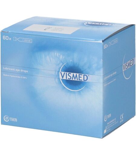 Vismed contient de l'hyaluronate de sodium (hyaluronate sodique), un polymère naturel qui est également présent dans certaines structures de l'œil et dans d'autres parties du corps humain. L'hyaluronate de sodium présente comme caractéristique spécifique qu'il peut constituer un film régulier et stable sur l'œil, c'est-à-dire un film qui reste de façon durable, qui n'est pas rapidement rincé et qui n'a pas d'influence négative sur la vue. Il s'agit d'un polymère permettant d'augmenter la viscosité et la capacité bioadhésive des solutions instillées dans l'œil. C'est grâce à l'hyaluronate de sodium que Vismed possède des caractéristiques viscoélastiques et hydrophiles (= la capacité de se lier à un grand nombre de molécules d'eau). En effet, Vismed constitue un film stable sur la surface oculaire, lequel disparaît lentement par le clignotement des paupières. C'est la raison pour laquelle Vismed associe une action prolongée à un confort maximal. Le lubrifiant oculaire Vismed est caractérisé par une composition unique en son genre et est, par voie de conséquence, très bien toléré. Finalement, Vismed ne contient pas d'agents conservateurs.IndicationsA préconiser dans les cas suivants:Afin d'humidifier/lubrifier l'œil en cas de sensation de sécheresse oculaire, de brûlure et/ou de fatigue oculaire,Afin d'humidifier/lubrifier l'œil en cas d'autres plaintes moins importantes à caractère non-pathologique causées par la poussière, la fumée, la chaleur sèche (l'air sec), la climatisation, le vent, le froid, l'utilisation prolongée d'un écran et/ou le port de lentilles de contact.Conseils d'utilisationDosage et utilisation: Enlever la partie supérieure de l'ampoule/du flacon en la dévissant. Nous vous conseillons d'instiller, autant de fois que nécessaire, 1 à 2 gouttes de Vismed dans le sac conjonctival de l'œil, sauf si votre médecin traitant ou le spécialiste qui vous conseille vous ont donné un avis contraire. Clignoter ou battre des yeux afin de répartir la solution de lubrification et de constituer un film transparent, liquide et durable sur la surface oculaire. C'est la raison pour laquelle Vismed peut également être utilisé en portant des lentilles de contact souples ou rigides.Composition1 ml de solution contient 1,8 mg d'hyaluronate de sodium (hyaluronate sodique), du chlorure de sodium (chlorure sodique), du chlorure de potassium (chlorure potassique), de l'hydrogénophosphate de disodium (hydrophosphate de disodium), du citrate de sodium (citrate sodique), du chlorure de magnésium, du chlorure de calcium (chlorure calcique) et de l'eau pour préparations injectables. La solution est hypotonique. Stérile. Ne contient pas d'agents conservateurs.ConditionnementBoîte de 60 x 0,3 ml ...