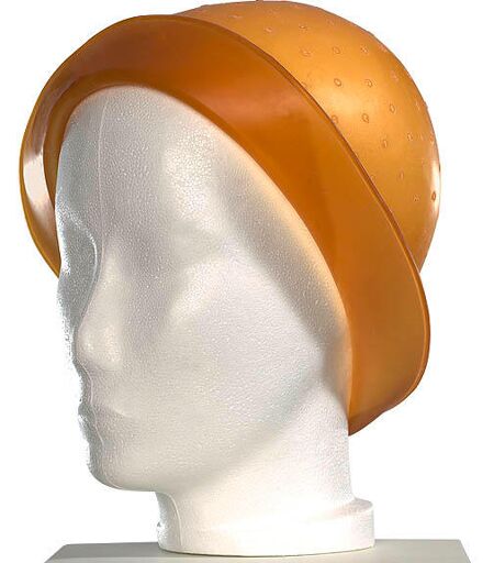 Réalisation salon, de première qualité, adapté pour toutes grandeurs de tête. Avec trous se refermant aussitôt après avoir sorti les mèches et avec gouttière, protège également la nuque. Avant utilisation il est conseillé de poudrer légèrement le chapeau à mèches. Piquez avec l'aiguille à mèches dans les trous déjà préparés et tirez avec précaution la mèche vers l'extérieur. ...