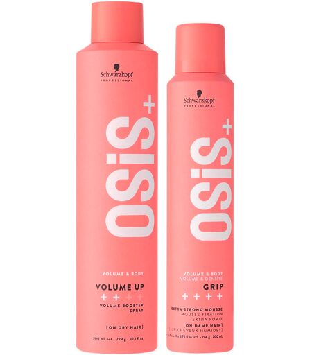 Le kit de coiffage volume OSIS+ de Schwarzkopf Professional comprend : Schwarzkopf Professional OSIS+ Volume & Body Grip Extra Strong Mousse, 200 mlSchwarzkopf Professional OSIS+ Volume & Body Volume Up Volume Booster Spray, 300 ml Mousse : OSiS Grip est une mousse à tenue extra-forte qui maintient même les cheveux rebelles dans leur forme et leur donne du volume et une brillance naturelle. En même temps, elle protège des dommages causés par le sèche-cheveux. Application : Bien agiter la mousse avant l'application. Tenir le produit en position verticale lors de l'application. Appliquer sur les cheveux humides et sécher au sèche-cheveux à l'aide d'une brosse. Alternativement, les cheveux humides peuvent être enroulés sur des bigoudis et un bonnet de séchage peut être utilisé. Spray booster : OSiS Volume Up est un spray volumateur à tenue moyenne, spécialement conçu pour les cheveux plus longs qui manquent de corps. Il donne immédiatement un volume incroyable aux cheveux tout en évitant l'électricité statique. Application : Appliquer à une distance d'environ 30 cm en plusieurs brèves pulvérisations tout en soulevant les passages plus importants avec les doigts. Utiliser avec parcimonie pour un look plus naturel. ...