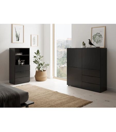 FMD - Commode avec 3 tiroirs et étagère ouverte Noir