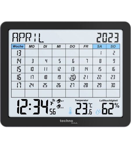 Techno Line - WT2600 radiopiloté(e) Calendrier noir Heures de réveil 2