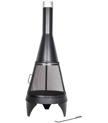 Cheminée en acier moderne pour votre terrasse. - Corps en acier avec peinture résistante à la chaleur. - Le grand foyer permet de voir les flammes. - L'aspect se patinera par un effet rouillé dans le temps. - Protection des étincelles et petites flammes par une porte grillagée - L'épaisseur de l'acier est de 2 mm. - Dimensions : hauteur 125 x diamètre 45/45 cm ...