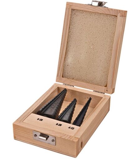 Idéal pour percer des trous d'un diamètre de 4 à 30 mm dans différents matériaux tels que métal, plastique ou bois, sans changement de foret. Foret 1 4/5/6/7/8/9/10/11/12 mm Ø tige : 6 mm Longueur totale du foret : 76 mm Longueur de tige : 20 mm Foret 2 6/8/10/12/14/16/18/20 mm Ø tige : 8 mm Longueur totale du foret : 69 mm Longueur de tige : 22 mm Foret 3 6/8/10/12/14/16/18/20/22/24/26/28/30 mm Ø tige : 10 mm Longueur totale du foret : 91,5 mm Longueur de tige : 24,5 mm Equipement : Coffret en bois 135 x 94 x 42 mm Set de 3 forets Revêtement en nitrure d'aluminium et de titane L'article livré peut différer légèrement de celui représenté sur la photo mais celui-ci sera en tout point conforme au descriptif ...